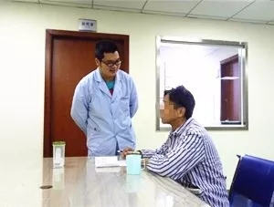 易行(左)与患者聊天
